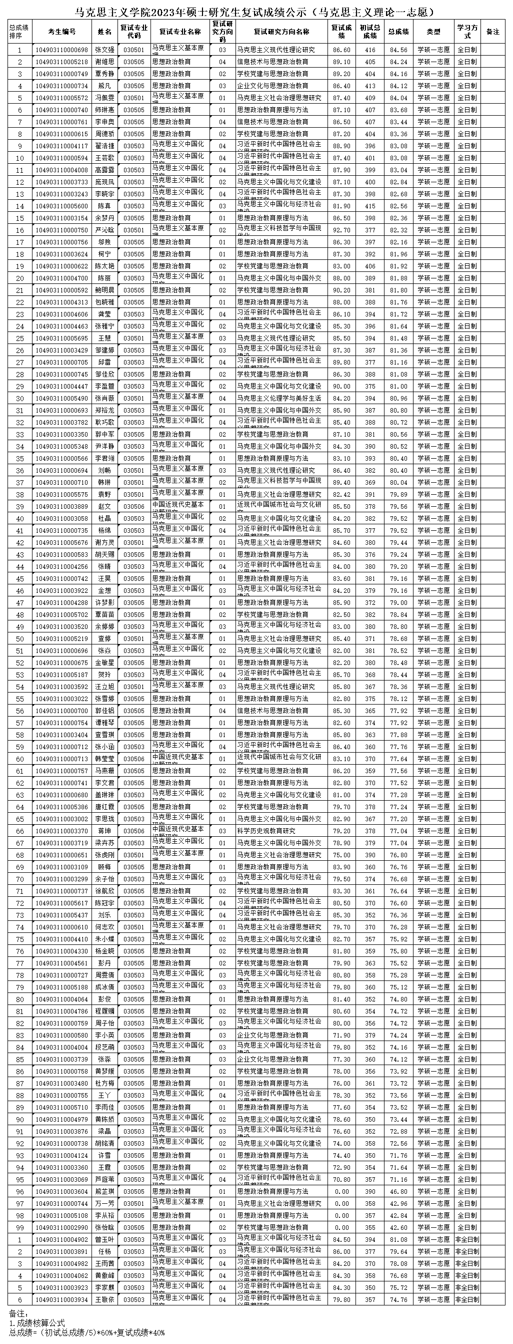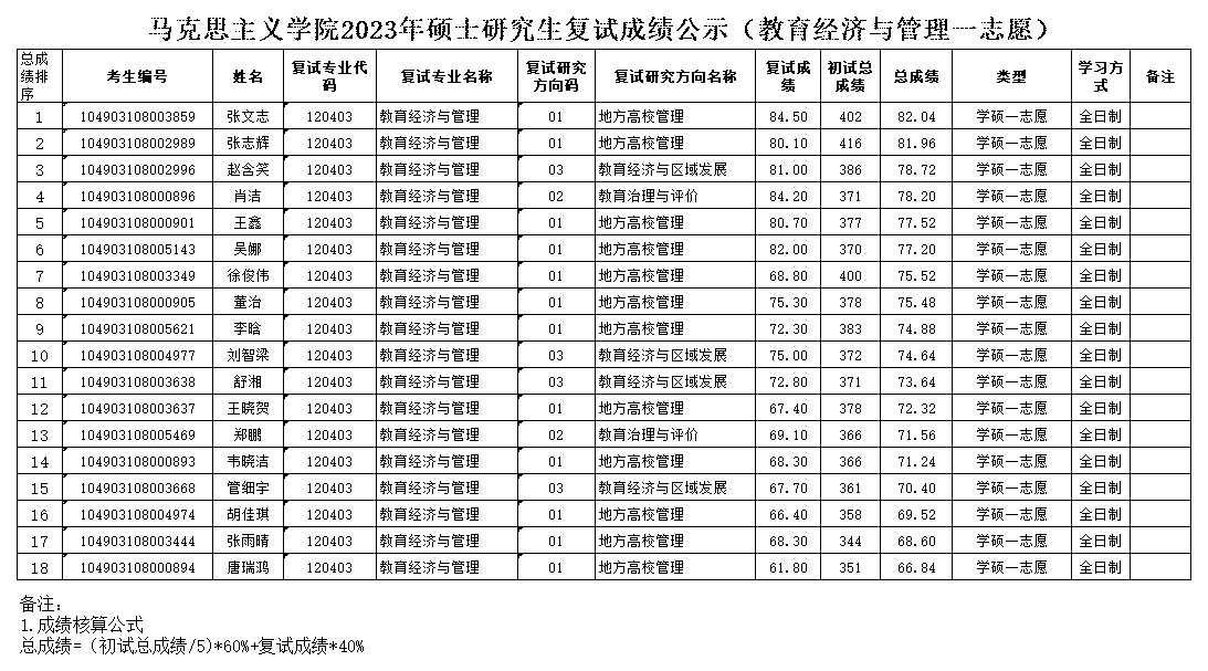 2023年硕士研究生复试成绩公示(一志愿)