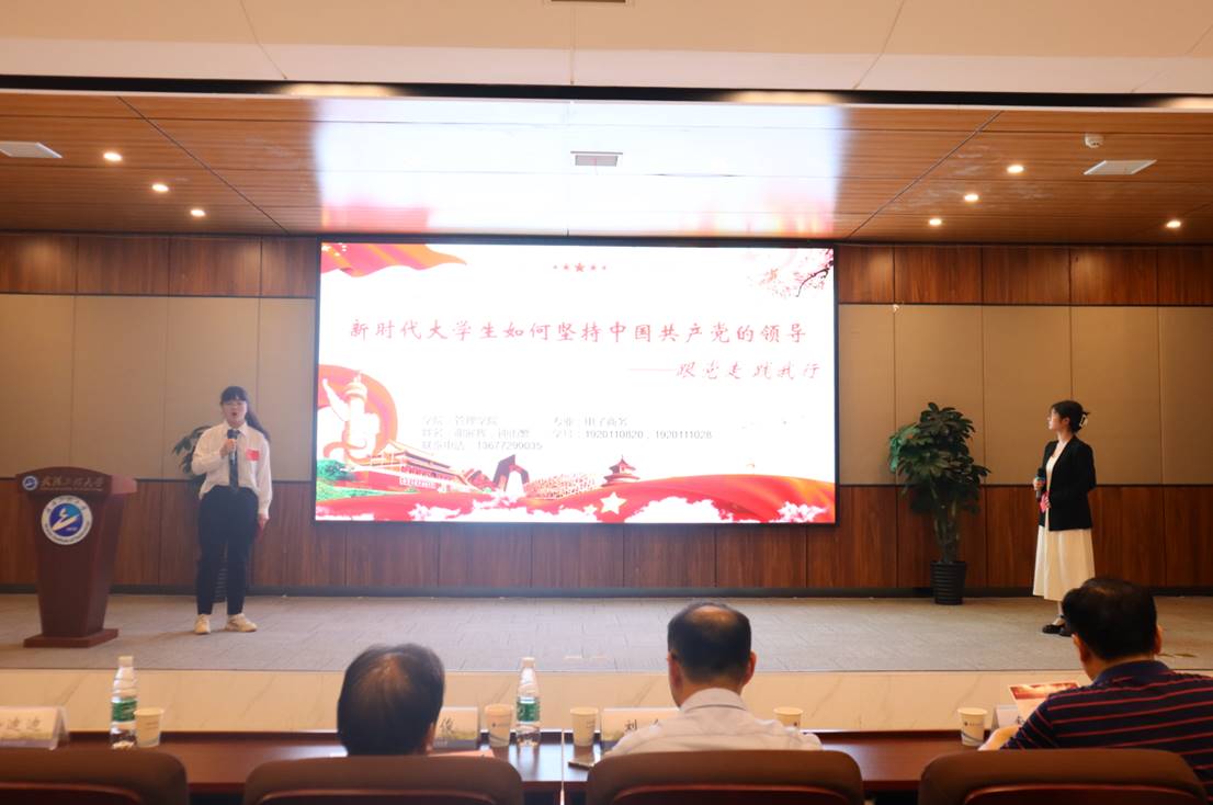 获得二等奖的第二组选手是来自材料科学与工程公司的邵金灿、冉冲、黎玲,她们演讲的主题是“奋斗百年路,启航新征程”。她们以五四运动、嘉兴南湖红船、遵义会议、中华人民共和国成立、南方谈话、党的十八大为线索,讲述了中国共产党的百年奋斗历程。