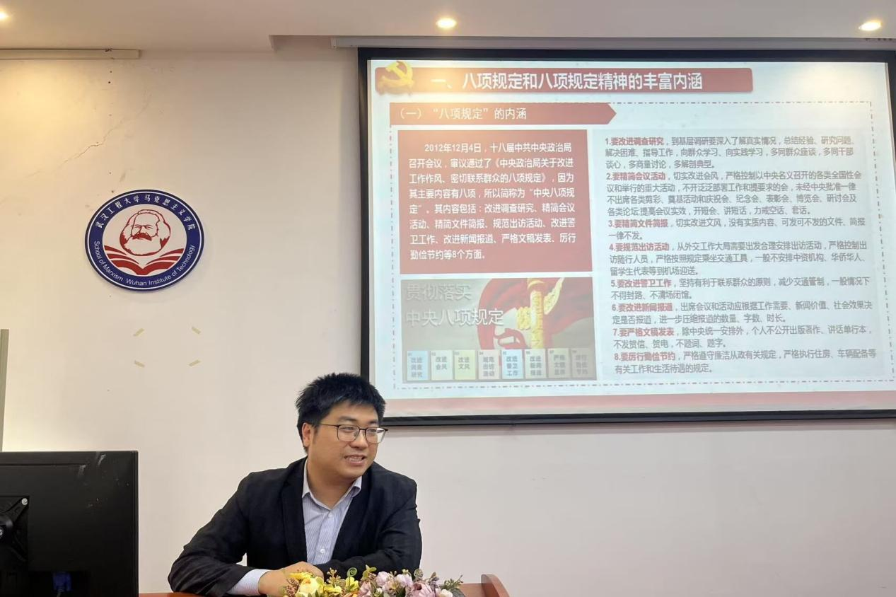 党支部书记蔡明广同志给全体党员上了一堂关于深入贯彻中央八项规定精神》的党课,要求全体党员认真学习,坚决反对 “四风”,切实改进工作作风,保持党的先进性和纯洁性。