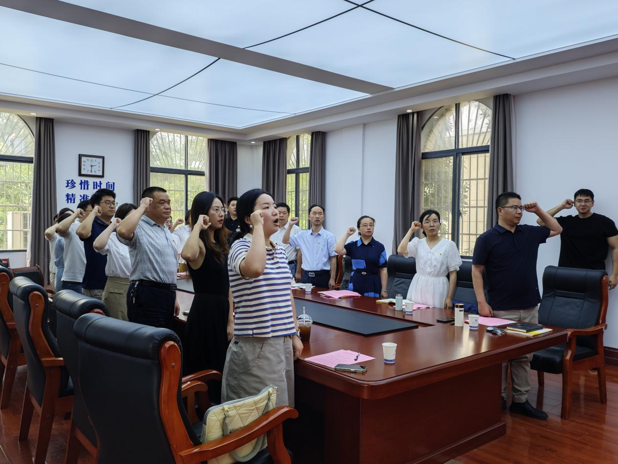 会议在雄壮的国歌中拉开帷幕,与会党员全体起立,奏唱国歌。庄芩同志带领全体党员重温入党誓词,全体党员右手握拳,庄重宣誓,回顾入党时的庄严承诺,再一次接受党性洗礼。机关党委第八支部陈绪兵同志带领全体党员领学新党章。徐肖艺、郭燕两位同志通报党员到会情况及本月党费缴纳情况。
