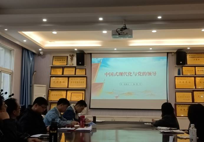 第五项,由张蕊同志讲授微党课。张蕊同志以“中国式现代化与党的领导”为主题,分别从中国共产党领导中国人民成功走出中国式现代化道路和中国共产党领导是推进中国式现代化的根本保证两个方面带领支部全体党员同志共同学习探讨。张蕊同志指出,必须始终坚持和加强党的全面领导,发挥党的政治领导力、思想引领力、群众组织力、社会号召力,为实现全面建设社会主义现代化国家的宏伟蓝图提供坚强领导。
